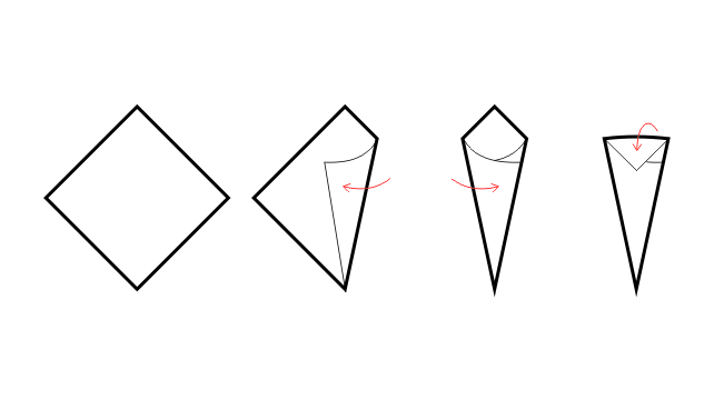 O processo de como fazer cone de papel manteiga pode ser ainda mais simples, com você cortando um triângulo de papel manteiga, enrolando-o e dobrando a ponta, se quiser.