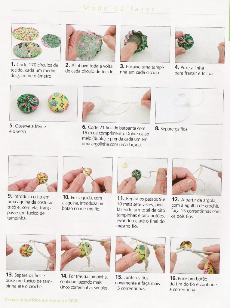 Para ver como é que se faz este tipo de artesanato, selecionamos um passo a passo bem legal extraído de uma revista de artesanato. Veja com atenção todo o tutorial e depois ponha em prática o que aprendeu. É desta maneira que muitas artesãs estão começando hoje em dia. Aproveite o momento e ponha as mãos na massa!