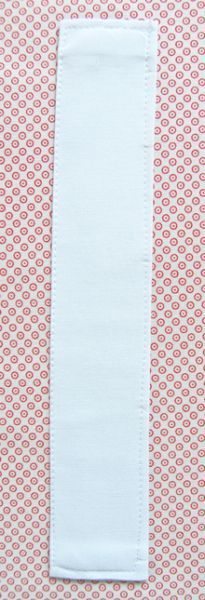 Logo após, faça as tiras para pendurar a cortina. Corte um retângulo de tecido, passe a ferro as pontas e depois dobre ao meio, passando também.