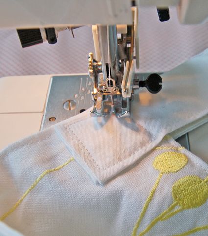 Em seguida, pesponte ao redor dos três lados costurados juntos, menos na barra.