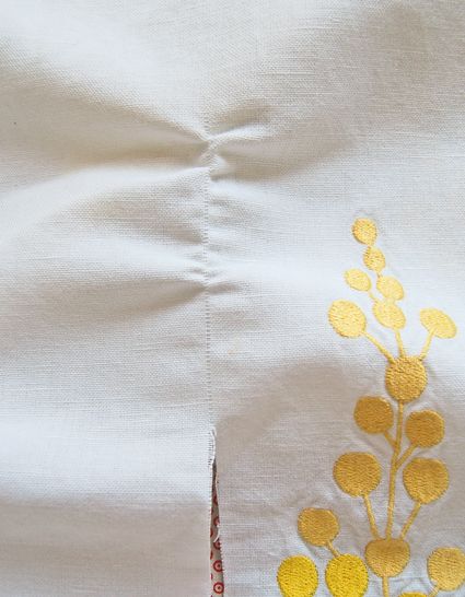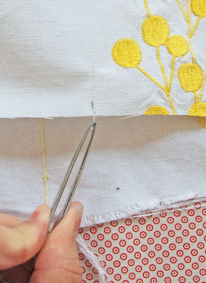 Logo após, para finalizar a sua peça, dobre a tira ao meio, posicione uma ponta de cada lado da cortina e costure. Costure quantas tiras você quiser em sua cortina. E está pronto!