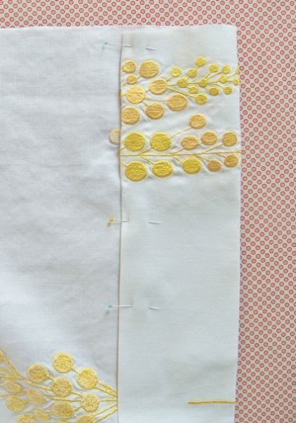 Em seguida, dobre ao meio novamente, prenda e costure ao redor.