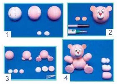 Com o crepom branco, você irá encapar a meia esfera n° 2. Depois monte a cabeça fazendo o nariz com a cartolina. Pinte com tinta vermelha. Ao invés de pintar, você pode fazer com cartolina já na cor vermelha. Faça os olhos e as orelhas da mesma forma.