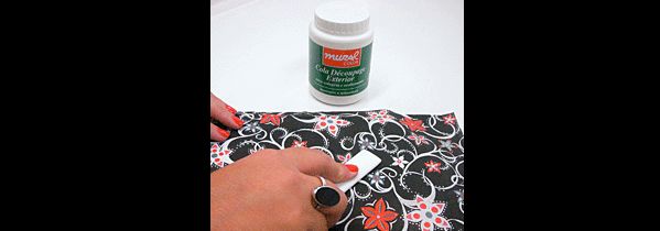Coloque o guardanapo sobre a cola e pressione com a espátula.