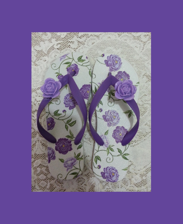 Aprecie sem moderação muitos outros modelos de chinelos com decoupage, e até chinelos decorados com tecido e fuxico, para quem gosta destes enfeitinhos fofos e sustentáveis (pois utilizam retalhos de tecido para serem confeccionados).