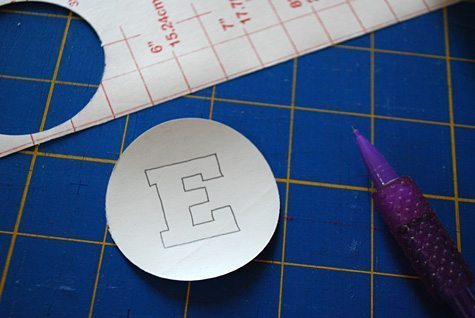 Em seguida, se você quiser personalizar o seu vidro com uma letra dentro de um círculo, como no exemplo que estamos apresentando, você deve primeiro recortar o círculo no papel contact e depois desenhar uma letra dentro do círculo, de forma centralizada.