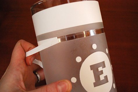 Fixe o círculo de papel contact com a letra na posição do seu vaso de vidro que você desejar.
