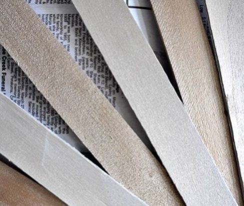 Em seguida, aplique em algumas plaquinhas a tinta para madeira que cria textura na superfície, para que ao final do trabalho, o seu espelho possua um detalhe ainda mais interessante e diferenciado.