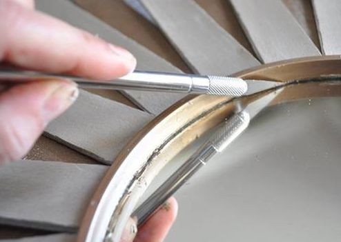 Agora, para finalizar a sua peça, se você quiser, faça um desgastado na moldura do espelho, com o auxílio da espátula, para que o visual final de seu espelho seja o mais interessante possível. Porém se você quiser, pode deixar a pintura intacta e sem ranhuras. E está pronto!