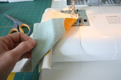 Agora, corte os cantos e faça uma costura em ziguezague ao redor.