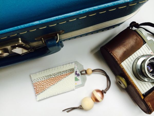 Se você vai viajar faça uma etiqueta de bagagem com retalhos de couro com as cores de sua preferência, para identificar as suas malas.
