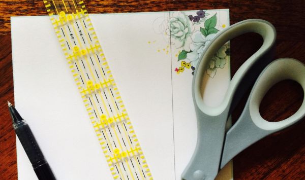Logo após, corte uma tira do papel escolhido com largura que permita entrar em sua peça de couro.