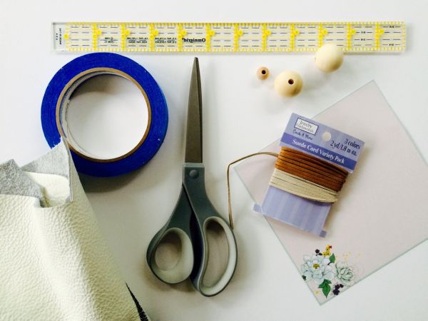 - Contas pequenas e grandes de madeira com furo que permita passar o cordão de couro escolhido.
