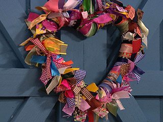 Para fazer esta linda guirlanda é muito simples, rápido e fácil, e você irá precisar apenas de: uma base para guirlanda em formato de coração (você pode fazer a base de coração com isopor) e fitas coloridas diversas.