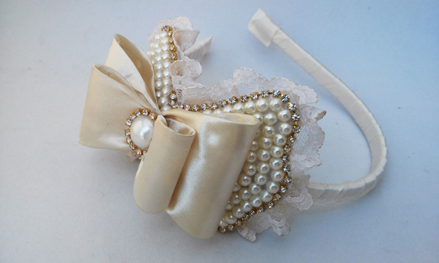 laço de fita com perolas