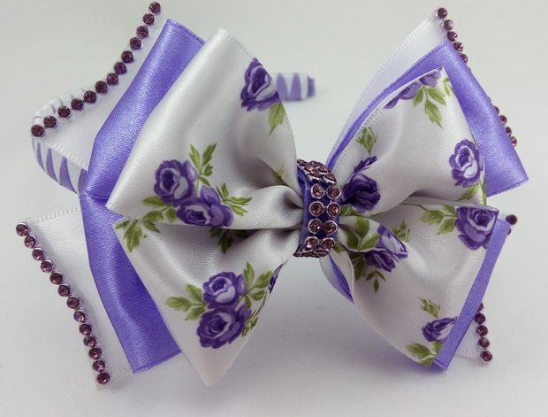 laço de fita roxo e branco