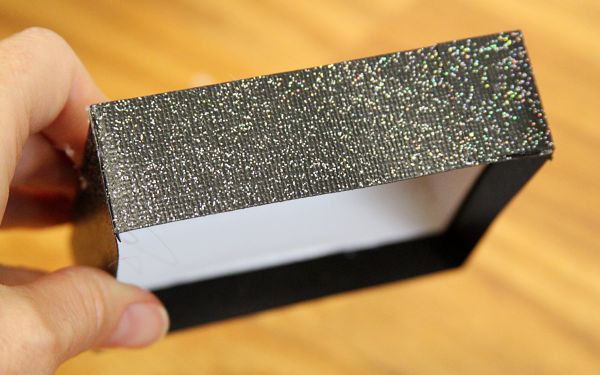 Em seguida, cole as tiras laterais nas laterais da tampa da caixa.
