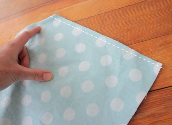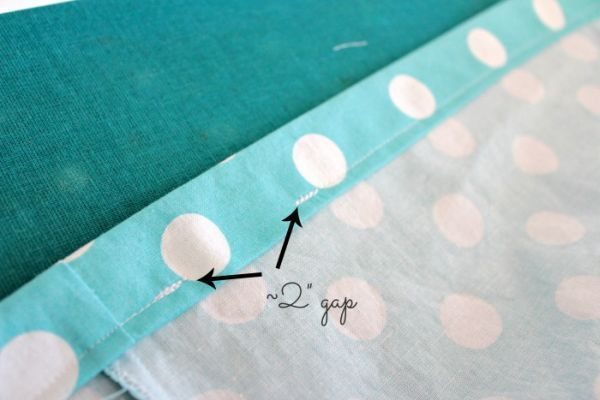 Em seguida, passe uma costura reta, mas deixando uma abertura.