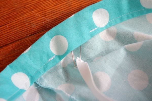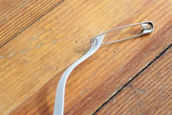 Logo após, posicione um alfinete de segurança na ponta do elástico.