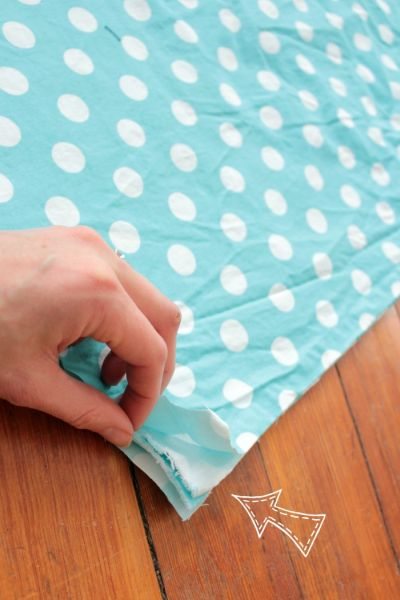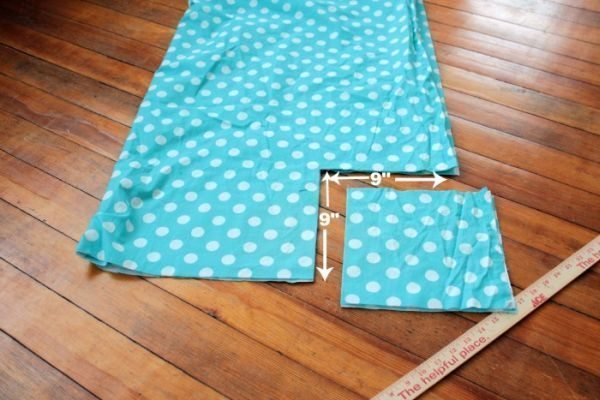Logo após, corte um quadrado no canto que estão alinhadas as quatro partes do tecido.