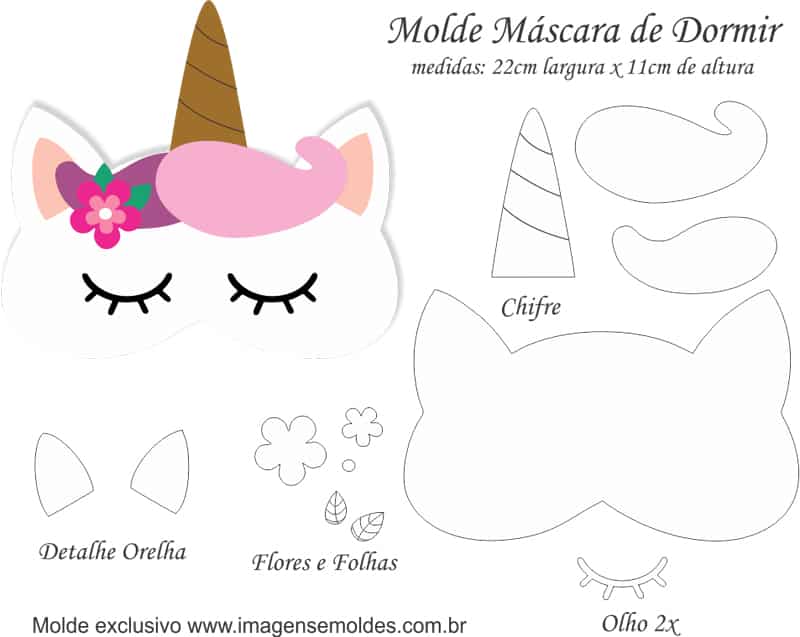 Máscara de Dormir de Unicórnio Molde