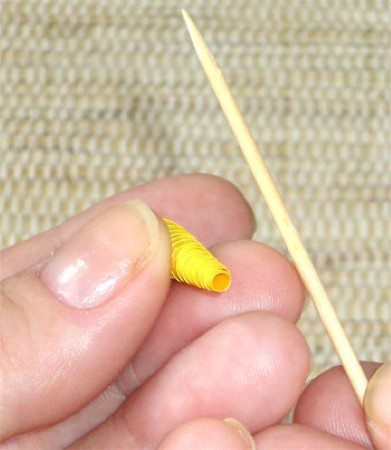 - Enrole o tiro do papel do lado mais largo para o mais estreito, sempre apoiada em um palito de dente.