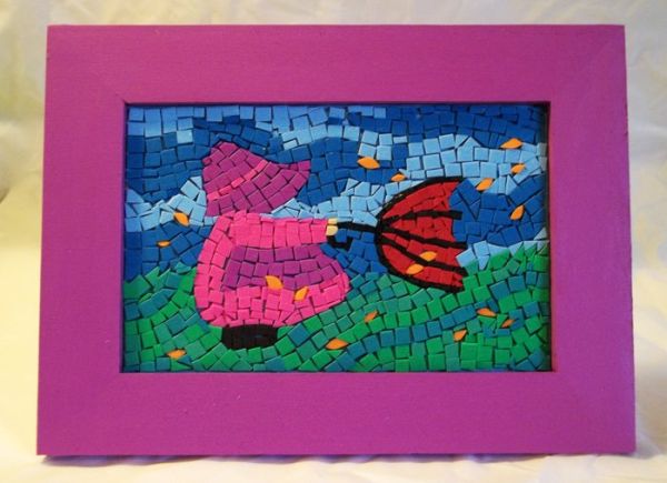 Você pode fazer um lindo mosaico com EVA, que resulta em uma peça bem interessante que não deixa nada a desejar aos mosaicos confeccionados com azulejos.