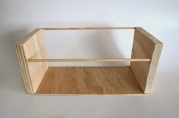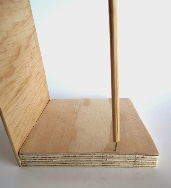 Para finalizar a sua peça, basta fixar a outra vareta, da mesma forma que fez com a anterior, mas pregue esta vareta em posição mais alta, na borda da caixa. E está pronto! Se quiser pinte a sua caixa com a cor que você desejar.