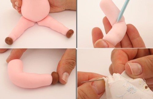 Agora faça os rolinhos para usar como patinha e com a esteca marque o centro delas, para fazer as dobrinhas. Cole as peças com cola branca.