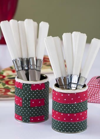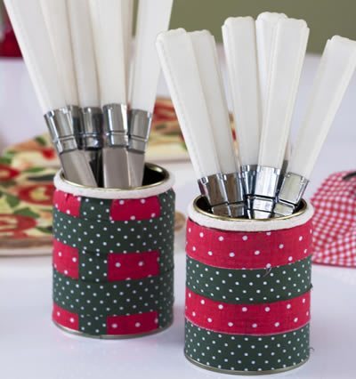 Reutilizando as latinhas descartáveis você vai compor estes lindos copinhos decorados. Além de porta-talheres, pode ser um porta-caneta ou o que você imaginar. É só colocar a cabeça para funcionar e criar uma utilidade inusitada para o item. As visitas vão adorar! Veja o passo a passo que trouxemos para você e crie também os seus!