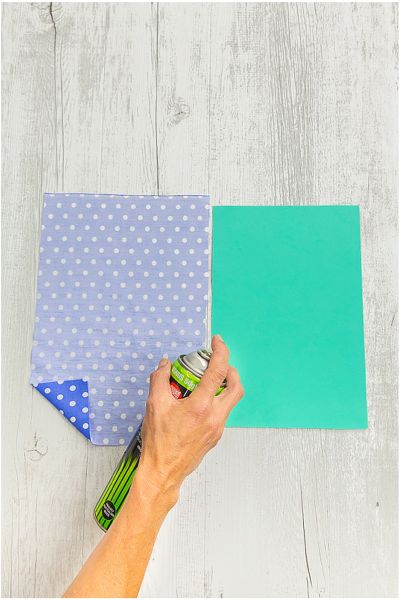 Em seguida, aplique a cola em spray no avesso do tecido e cole sobre o pedaço de EVA. E deixe a cola secar muito bem antes de manusear novamente a sua peça e continuar com a confecção de seu trabalho.