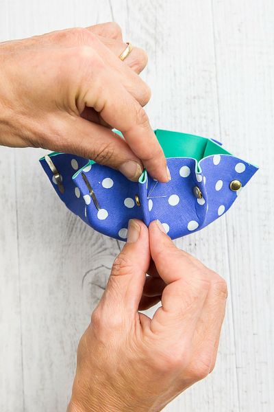 Agora, para finalizar a sua peça, siga dobrando nas marcações e fixando as tachinhas. E está pronto!