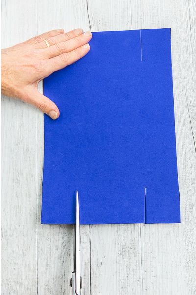Logo após, neste retângulo, marque o corte nas pontas dois cortes paralelos e iguais.