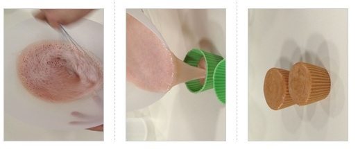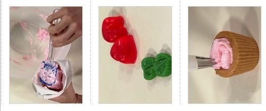 A mistura deve ser levada em um recipiente, e mexa bem para engrossar a massa e adicione ele em forminhas de silicone com formato de cupcake. Espere secar e remova da forma.