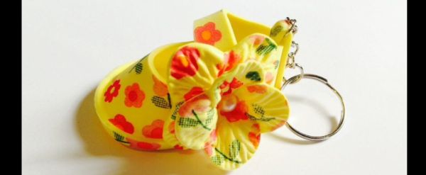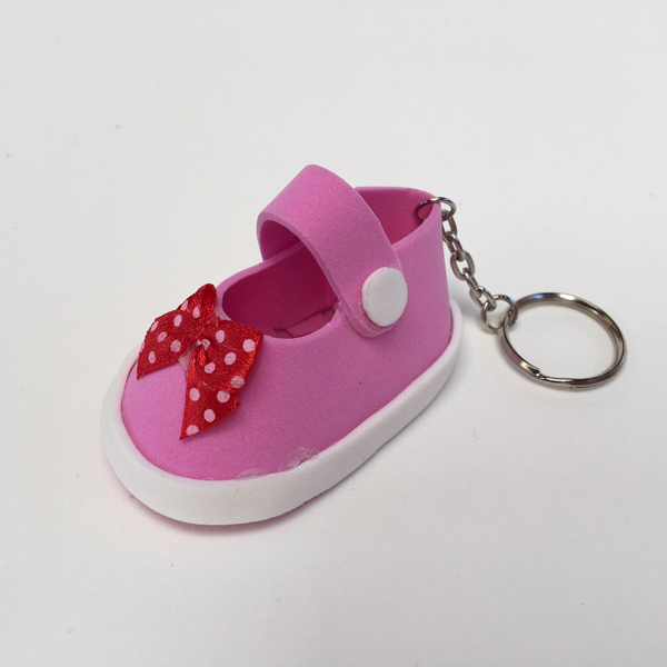 Para finalizar a sua lembrancinha, se você desejar, fixe a argola para chaveiro em um pedaço de corrente, abra a última argolinha da corrente e fixe na parte detrás do sapatinho. E está pronto!