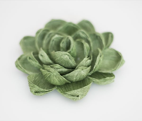 Em seguida, siga colando pétalas até preencher todo o círculo de papel estruturado, até criar a sua flor suculenta.
