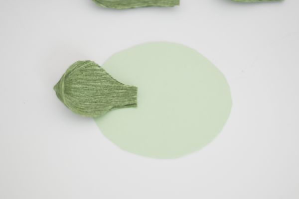 Logo após, corte a parte inferior da sua pétala criada, a parte em que estão posicionadas as pontas da tira de papel crepom.