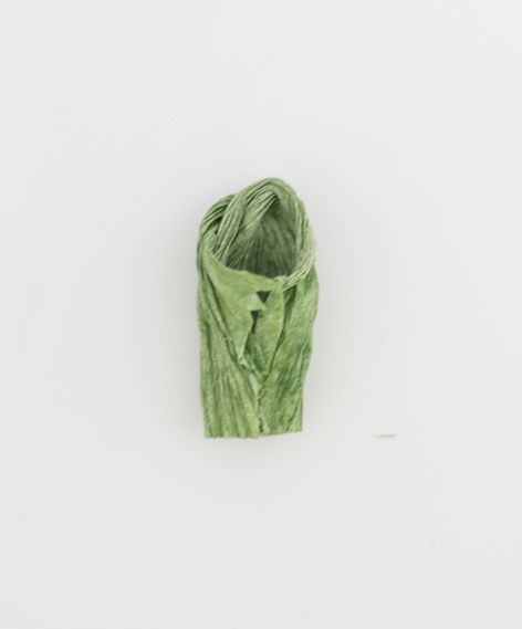 Em seguida, torça o centro de uma tirinha de papel crepom e, depois, dobre ao meio a tira de papel crepom.