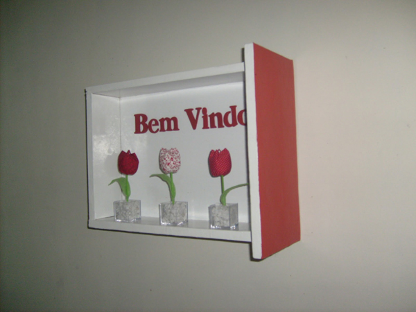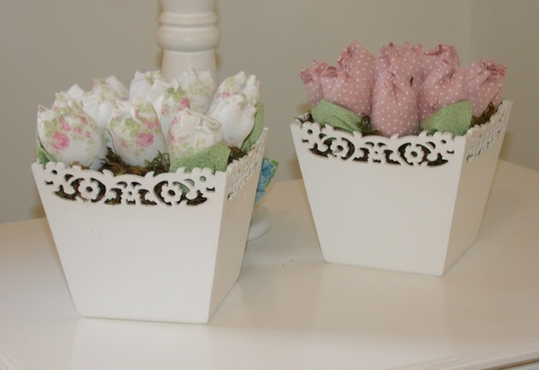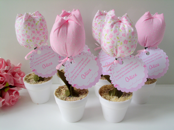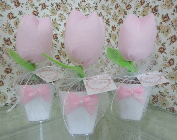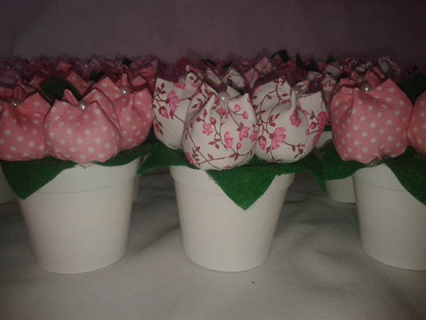 A tulipa de tecido na gaveta enfeita com primor qualquer cômodo de sua casa ou espaço em sua festa.