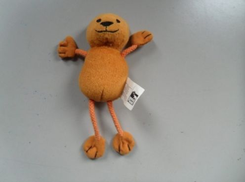 Comece a costurar à mão juntando as duas partes, porém deixe uma abertura para virar o trabalho e encher com a manta acrílica. E enquanto estiver costurando costure um pedaço do cordão junto com as duas peças, o cordão une os bracinhos e as perninhas com o corpinho do bichinho. E com a peça já cheia de manta acrílica, vire as bordas da abertura para dentro e dê pontos invisíveis para fechar.