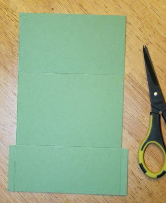 Comece cortando uma tira larga no papel estruturado e vincando três partes nesta tira e também as laterais, porém com as laterais com largura bem fininha.