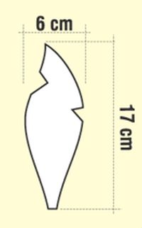 Comece desenhando as penas na cartolina ou papel cartão. Você precisará de oito penas para fazer um cocar. Para facilitar o trabalho, leve o molde da imagem acima para um editor de imagens (pode ser até mesmo o Word) e já deixe a pena do tamanho que você quiser, assim não terá que desenhá-la, basta passar para a cartolina com papel carbono.