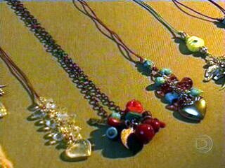 – Depois, coloque um a um nos elos da corrente. Não Vá encaixando até dar o efeito desejado. Feche bem a argola para que a peça não caia.