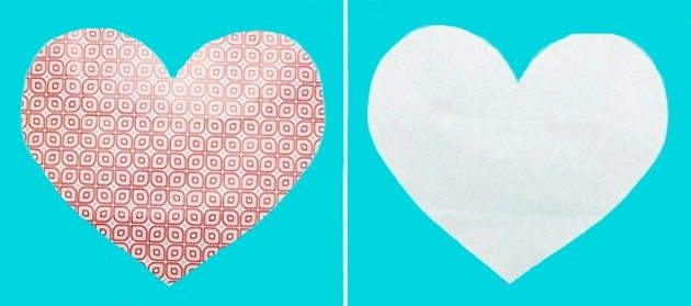 Primeiro recorte um coração bem homogêneo. Quem tiver dificuldade para recortar, meça um quadrado, dobre ele ao meio e corte as laterais do coração.