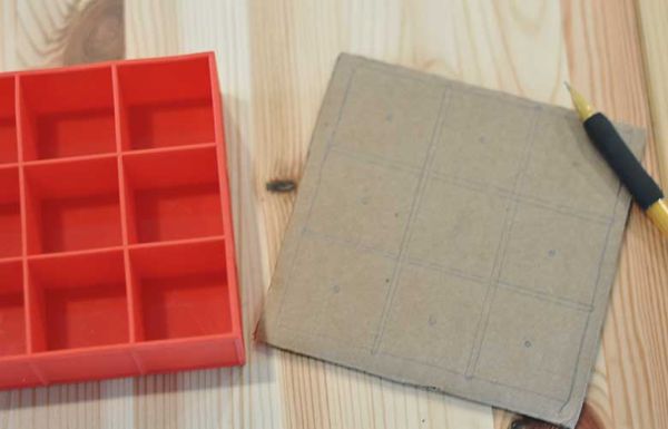 Comece desenhando os formatos da forminha de gelo no pedaço de papelão.
