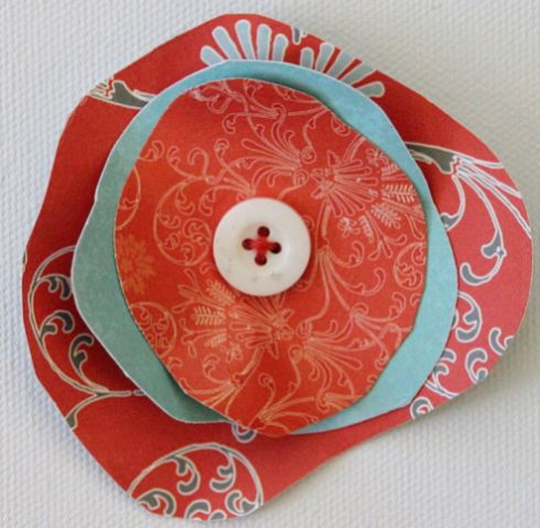 Agora, monte as suas flores. Posicione três círculos, um sobre o outro e com o menor como miolo, e prenda um botão no centro de sua flor, com o auxílio da agulha de mão e da linha para costura.