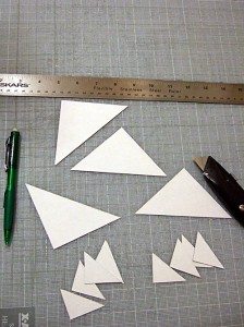 Logo após, posicione a foto ou o desenho escolhido no fundo do quadro menor. E corte triângulos de papel para acomodar os cantos dos quadros, para que encaixe perfeitamente e não se solte com o passar tempo.
