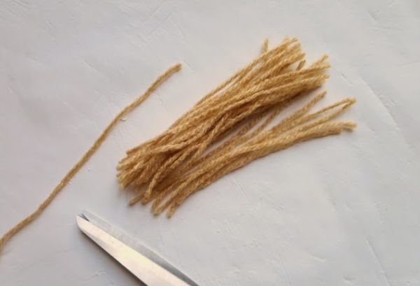 Comece cortando o fio de lã com 12 cm de comprimento, com auxílio da tesoura.