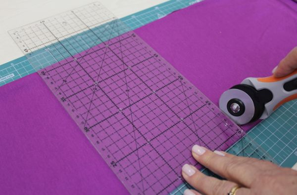 Em seguida, una as pontas dos retângulos e prenda com alfinetes para costura. Alinhave apenas três pontas.