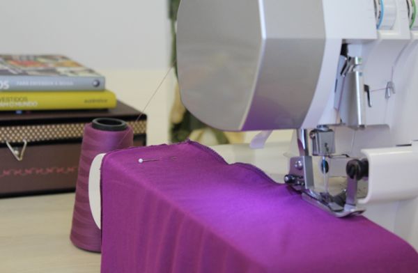 Em seguida, costure a lateral da peça fazendo uma costura reta e depois uma costura em ziguezague, para fazer um bom acabamento e não desfiar. E faça o mesmo com a outra parte do tecido.